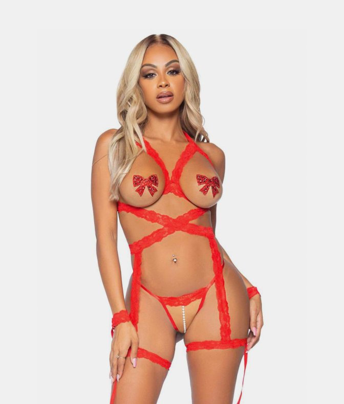 Leg Avenue 81640 Cami garter, g-string & cuffs seksowny koronkowy zestaw