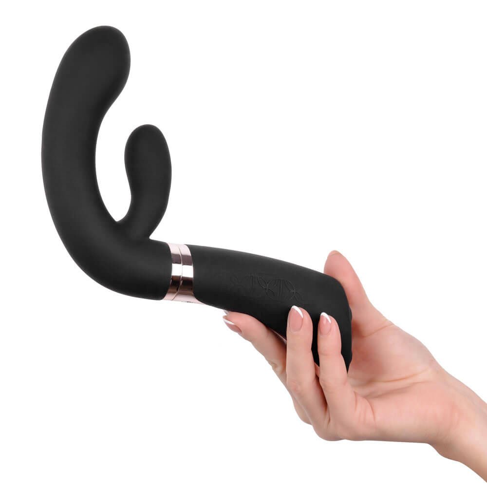 Luksusowy wibrator króliczek w czarnym kolorze z ozdobną, złotą obręczą z tworzywa ABS. Wykonany z aksamitnego silikonu wibrator jest niezwykle przyjemny w dotyku, a dwa zasilające motorki zapewniają niezapomniane wibracje, które dostarczą niesamowitej rozkoszy podczas jednoczesnej stymulacji łechtaczki oraz punktu G. Wygodny, oryginalny uchwyt Enigmy zapewnia wyjątkowy komfort podczas relaksu. Wibrator jest w 100% wodoodporny, więc zabawę możesz przenieść również do wanny lub pod prysznic.